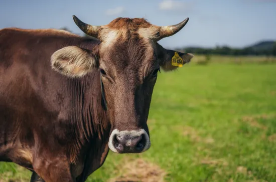 sehr dunkle, glänzende Braunviehkuh