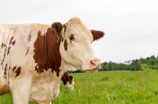 modische Frisur, genetisch hornlos, brauner Fleck am Kopf